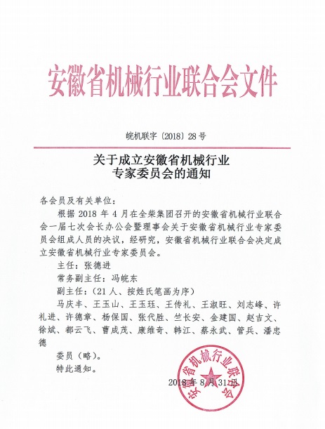关于成立安徽省机械行业专家委员会的通知