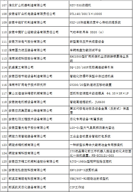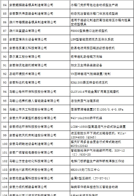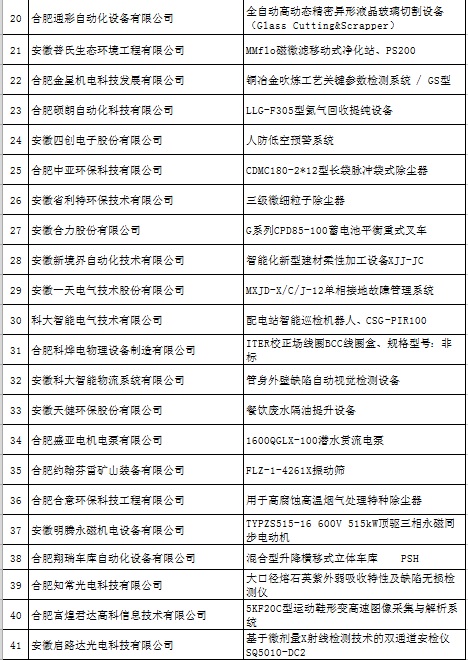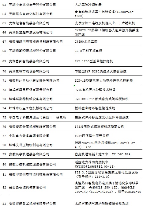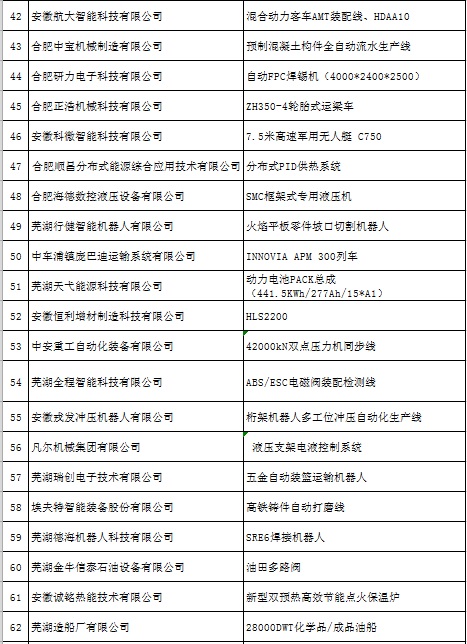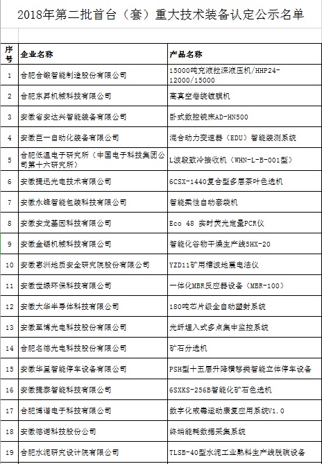 拟认定2018年第二批安徽省首台(套)重大技术装备公示名单