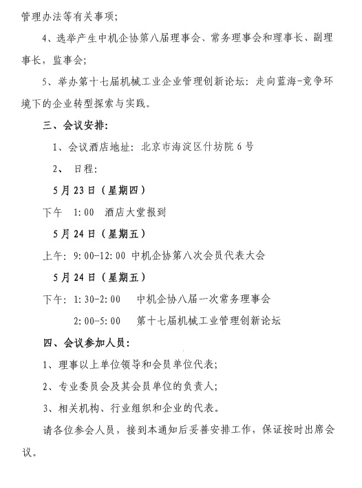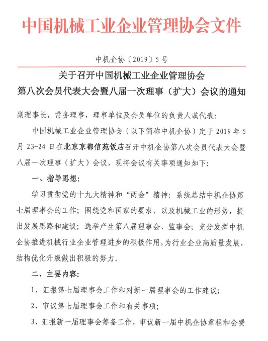 关于召开中国机械工业企业管理协会第八次会员代表大会暨八届一次理事(扩大)会议的通知)