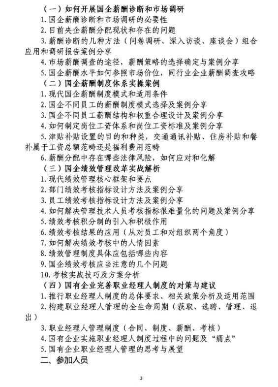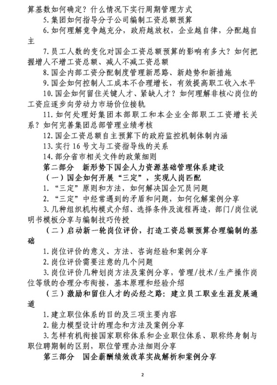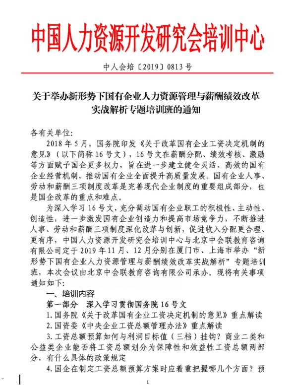 关于举办新形势下国有企业人力资源管理与薪酬绩效改革实战解析专题培训班的通知