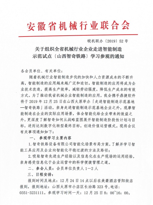 关于组织全省机械行业企业走进智能制造 示范试点【山西智奇铁路】学习参观的通知