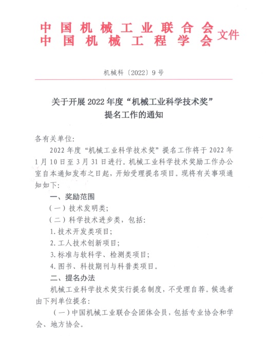 相关链接:2022年度“机械工业科学技术奖”提名工作手册